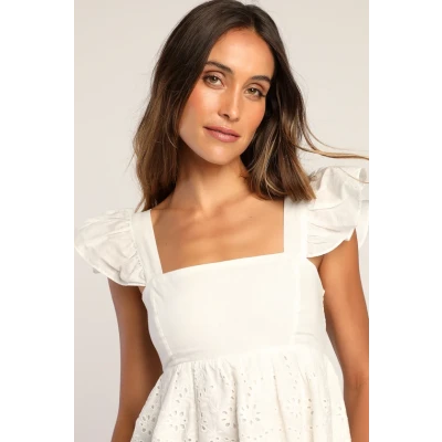 Always Your Baby White Eyelet Babydoll Top